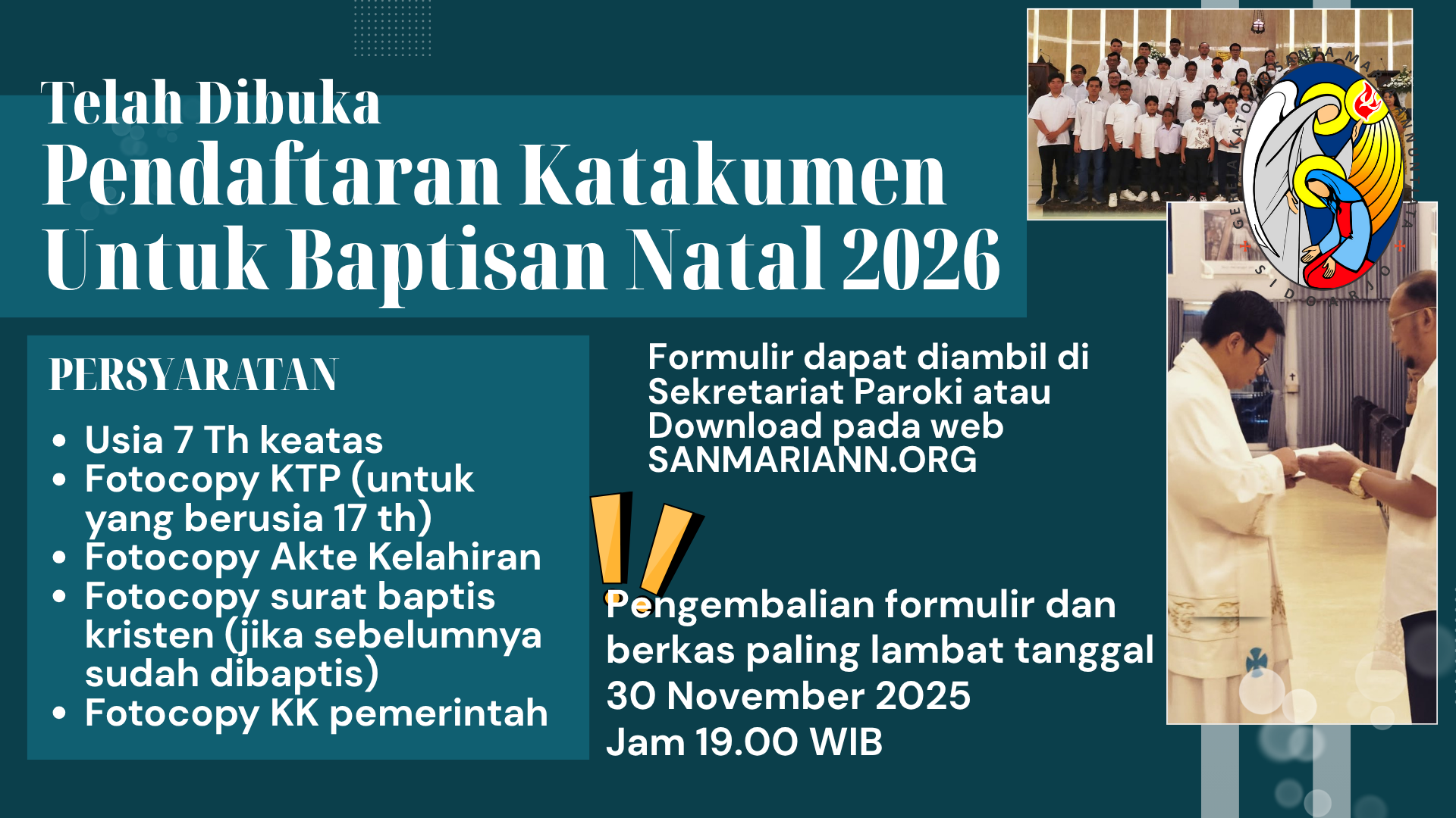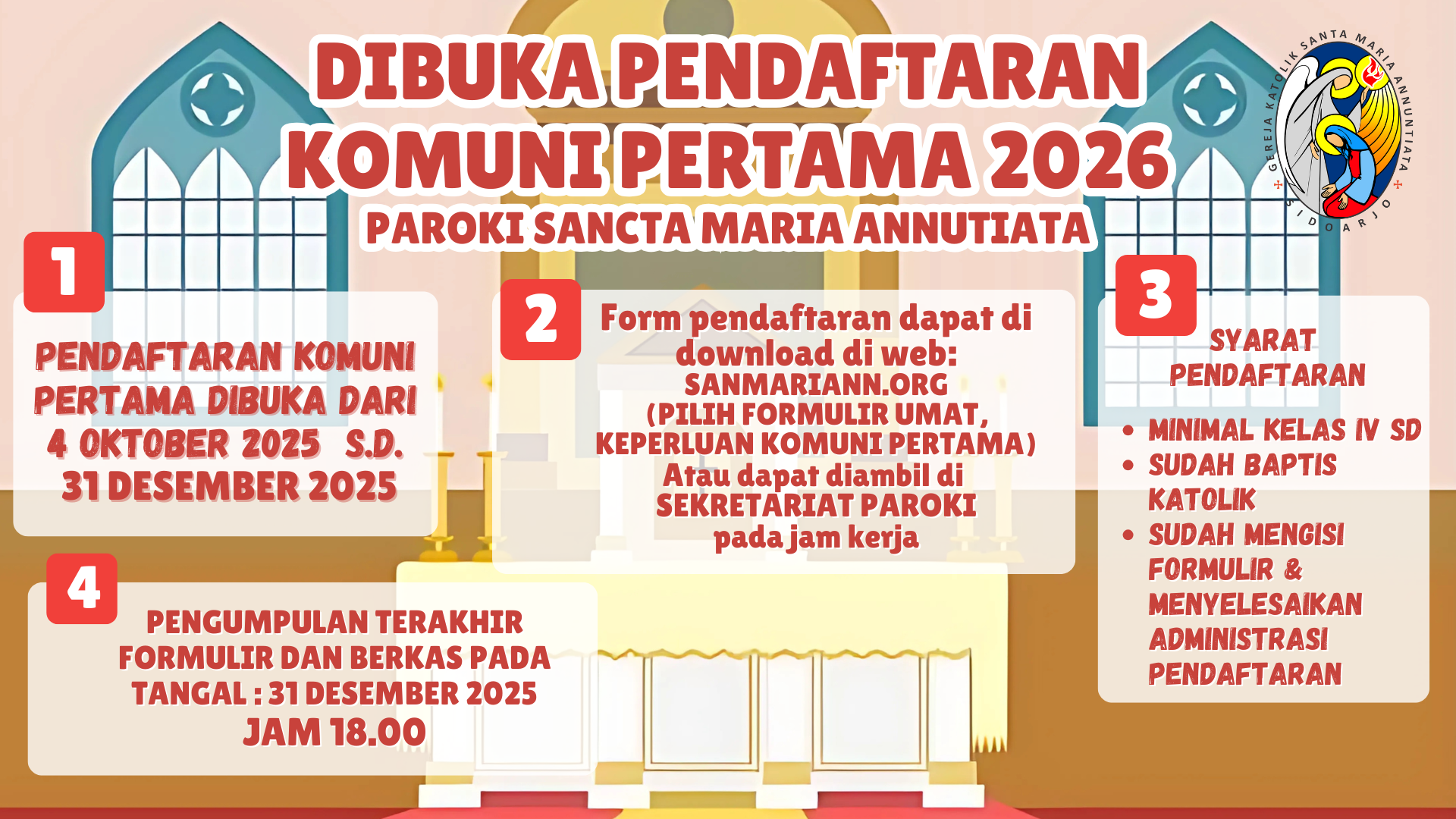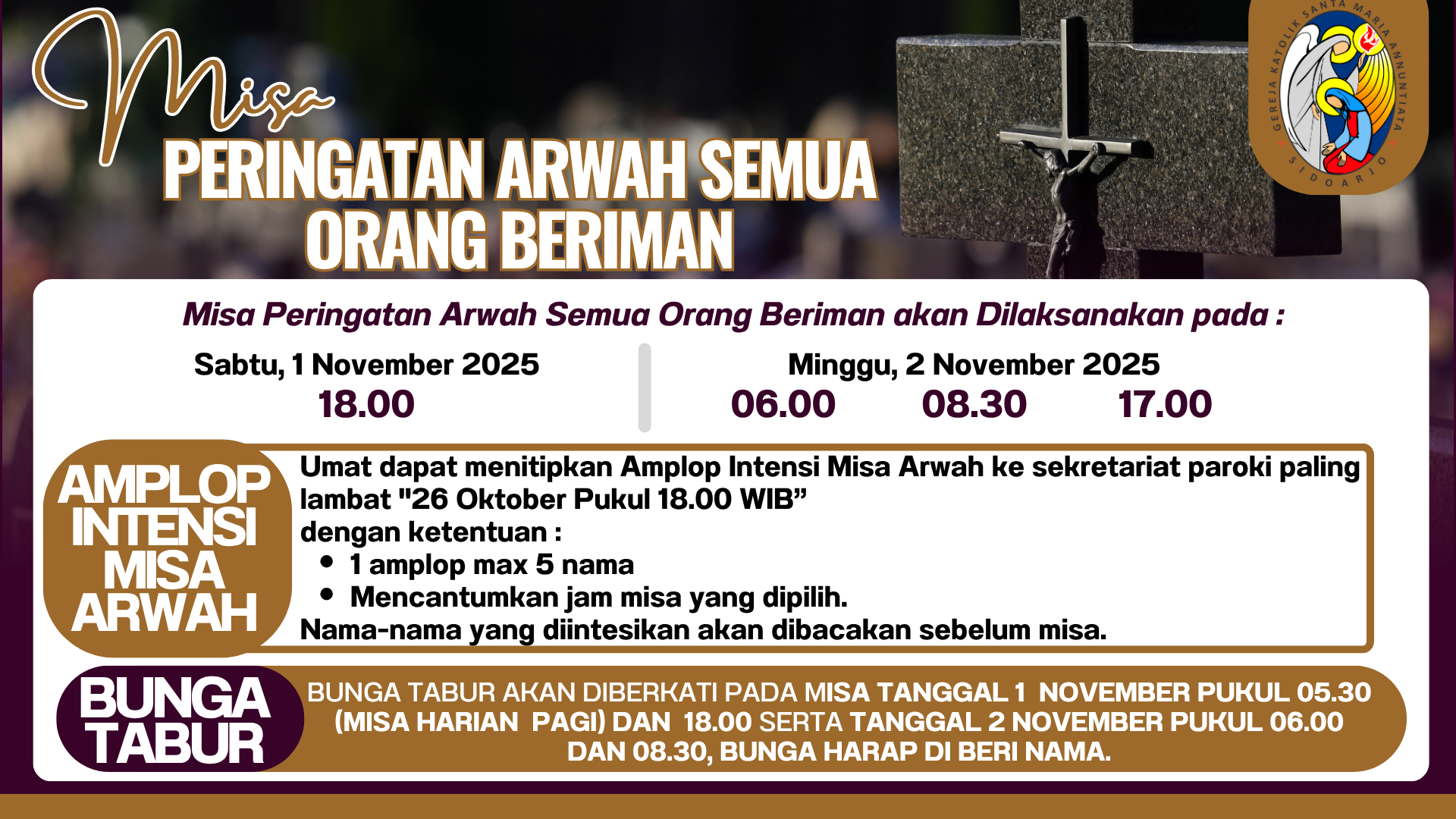 Minggu: 06.00 WIB; 08.30 WIB; 17.00 WIB - Misa Jumat Pertama